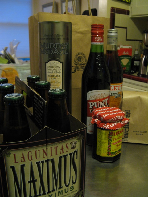 Lagunitas Beer. Mrs. Flannestad’s lately been on a bit of a Bridgeport Hop Czar binge. I like that beer, but we’ve had six packs for the last few weeks. Lagunitas is a great brewery in Petaluma, CA and we shall see if Lagunitas Maximus meets with her approval. It appears to be some sort of Double IPA.